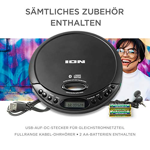 Specification: ION Audio CD GO – Tragbarer Retro CD-Player mit Kopfhörern und Bluetooth-Verbindung für Streaming an Bluetooth…