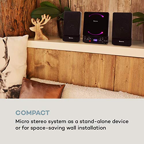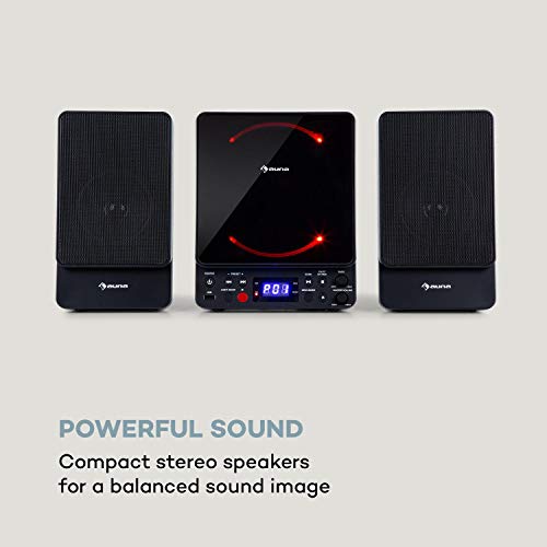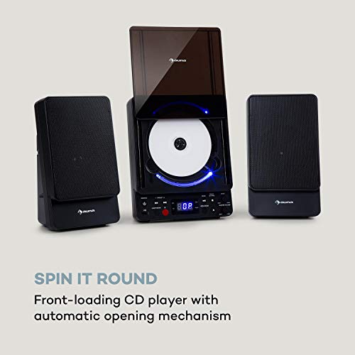 Specification: auna Microstar – Microsystem, Vertikalanlage, CD-Player, Bluetooth, Stereo-Lautsprecher, USB-Port, UKW-Tuner, AUX-In, LC…