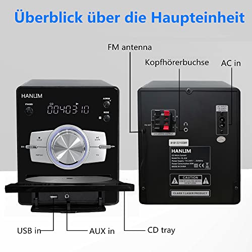 CD-Stereoanlage Mini-Komponente 30W RMS CD-Player UKW/Bluetooth-kompatibel/USB/AUX/Fernbedienung/Kopfhörerbuchse…