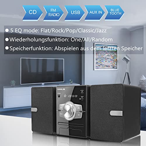 Hochwertiger Sound mit maximaler Leistung von 30W:15W+15W, Hochleistungs-Seidenhochtöner für hohe Frequenzen und präzise Abbildung, ausgewogener geflochtener Kohlefaser-Tieftöner für kraftvolle und transiente Bässe. Einfaches und elegantes kompaktes Design, einfache Bedienung und einfache Bedienung, um Musik von CDs und Smartphones zu genießen. Sie können Ihre bevorzugte Klangqualität wählen, Pop / Jazz / Rock / Klassik / Flach, genießen Sie einen angenehmen Klang