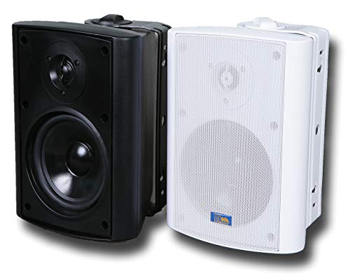 Paar unserer erstklassigen Terrassenlautsprecher für den Außen- und Innenbereich mit Mehrfachmontage. Einfach zu installieren und als Bücherregal-, Terrassen-, Deck-, Marine- oder Hinterhoflautsprecher zu genießen.