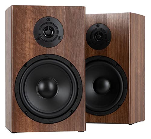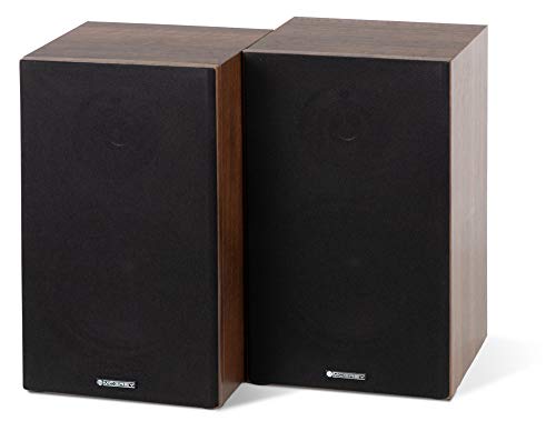 Gewicht je Box: 2,4 kg, Inklusive 2 Lautsprecher-Kabel mit 3 m Länge, braune Walnuss-Holz-Optik