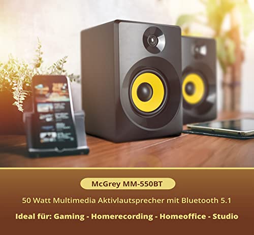 McGrey MM-550BT Multimedia Aktiv Lautsprecher Paar – Ideal für Schreibtisch, Gaming, Studio – 2.0 Regallautsprecher mit…
