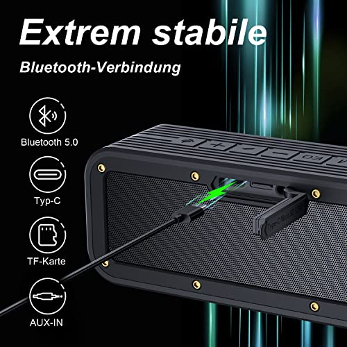 【Top mit Bluetooth 5.0-Version】 Dieser MusikBox verwendet die fortschrittliche Bluetooth 5.0 Technologie, und die Verbindungsreichweite beträgt bis zu 100 Fuß, die Verbindung ist schneller und stabiler. Funktioniert mühelos mit den meisten Bluetooth-Geräten, wobei es keine Latenz beim Verbinden mit Telefon/TV/Tablet und anderen Geräten besteht, um Videos anzusehen. Eingebautes Mikrofon fungiert als Freisprechfunktion.