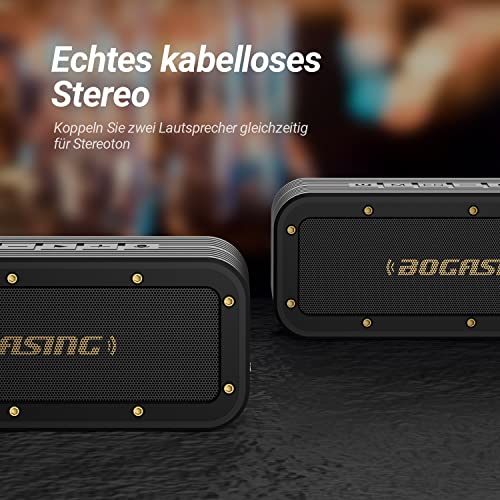 Bluetooth Lautsprecher BOGASING M4 Tragbarer Musikbox, IPX7 Wasserdicht, 40W Stereo Sound mit Dualen Bass-Treibern…